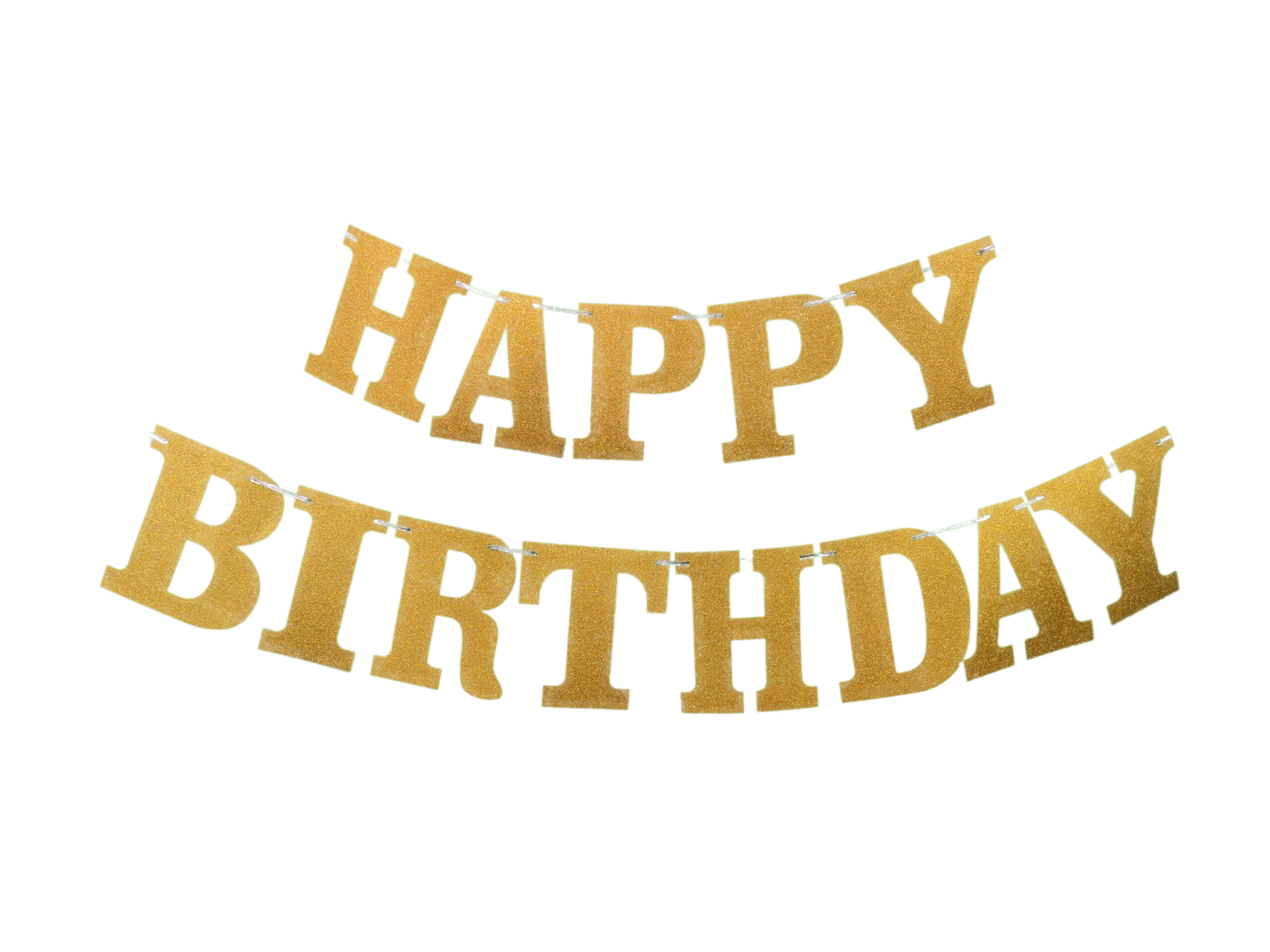 Our “Happy Birthday” banner with the individually punched letters, in elegant gold with a slight glitter effect, are a wonderful eye-catcher in every room.